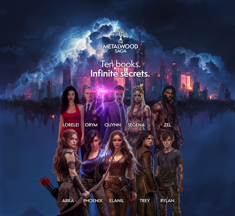 The Metalwood Saga is a sprawling science-fantasy adventure set in a world where floating cities hide dangerous truths and magic is waking after centuries asleep. Cast out and hunted, Phoenix joins a crew of unlikely heroes who uncover a conspiracy that spans planets and lifetimes. High-stakes, emotional, and unrelenting—this is a saga where every secret changes everything.